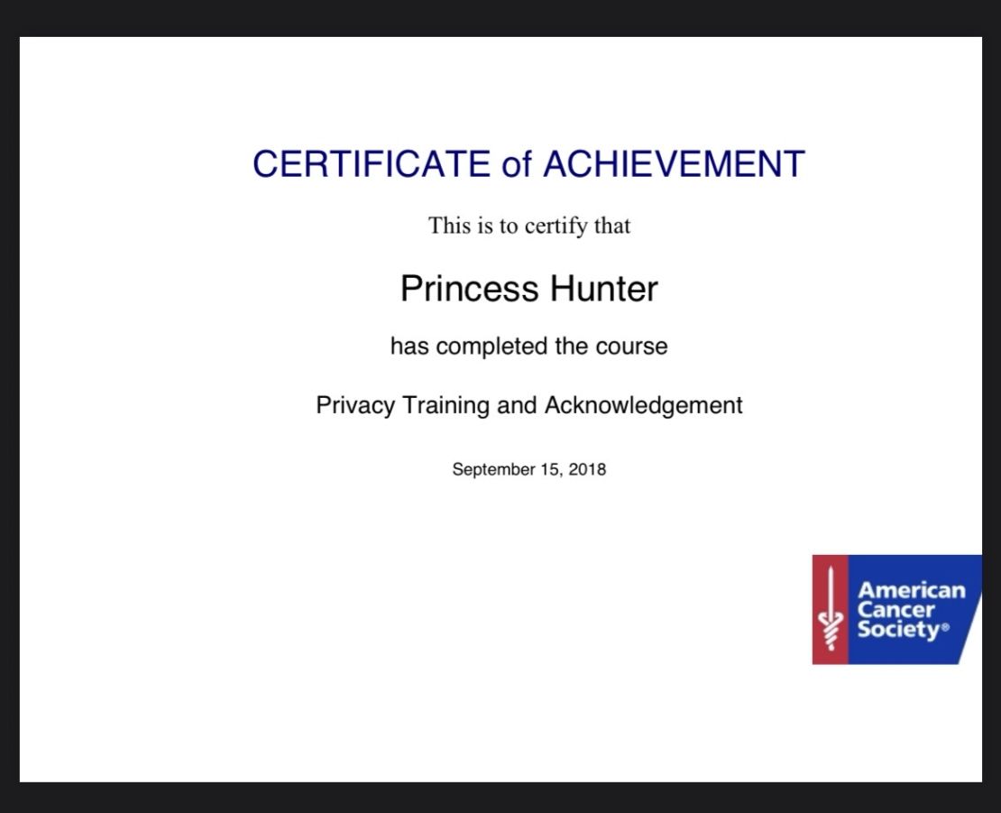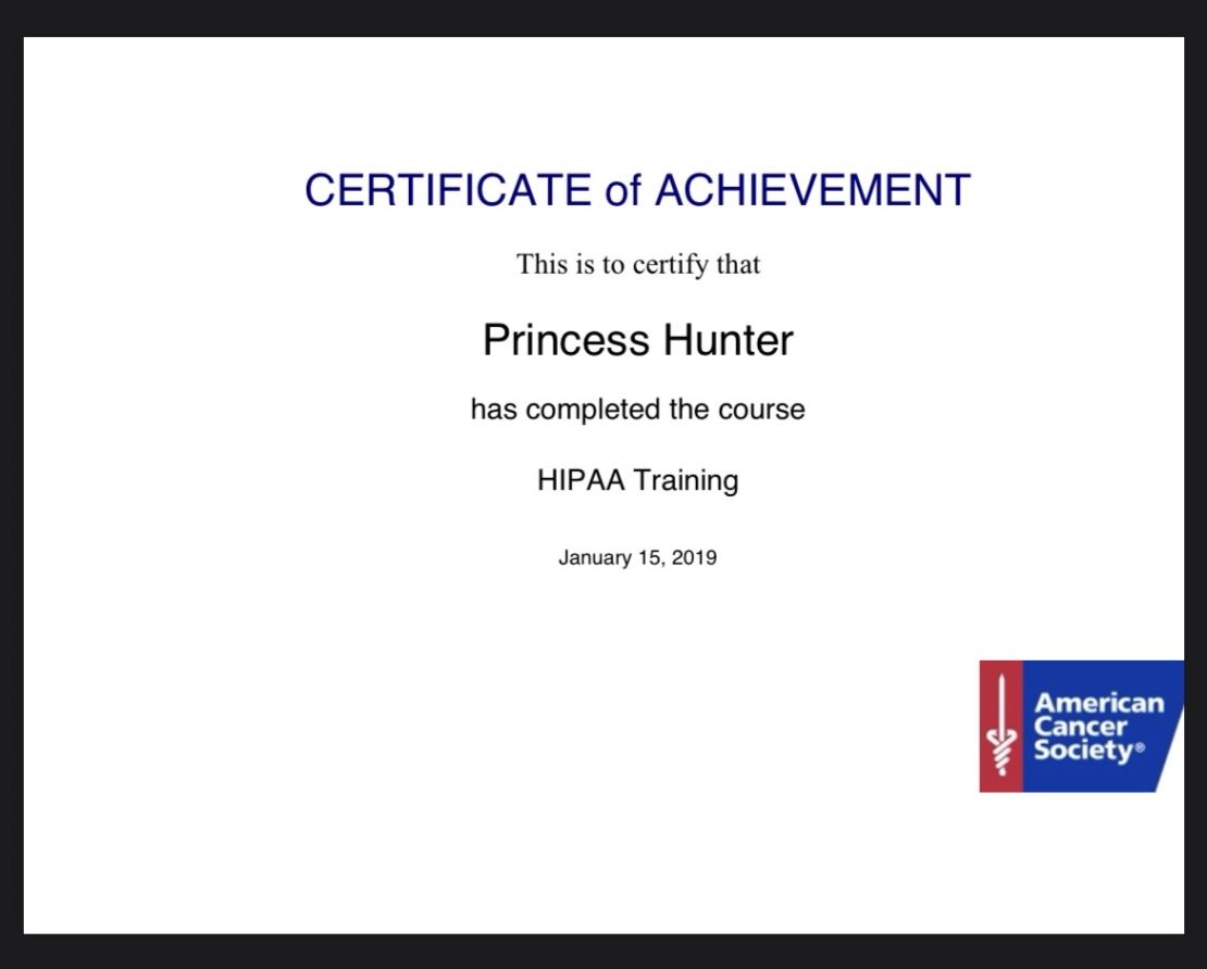 American Cancer Society HIPAA certified and certified through college. Your privacy and personal information are important. The goal of going to people you trust is to create a professional relationship to ensure that you have respectable referrals and references that